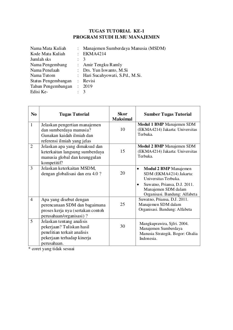 Ruang baca virtual di perpustakaan digital ut berisi buku materi pokok (bmp) secara utuh ( full text) yang dapat dimanfaatkan khusus bagi mahasiswa dan para tutor yang mempunyai akses ke layanan tutorial online u t. Soal ut manajemen ekma4476 audit sdm lengkap dengan kunci jawaban dan pemabahasannya bisa anda jadikan bahan belajar sebelum mengikuti uas nantinya. Dalam tahap audit lanjutan 4. Soal ujian ut manajemen ekma4476 audit sdm. Proses audit terdiri atas enam langkah: Tugas matakuliah universitas terbuka semester 2019/2020.2 fakultas program studi kode/nama Any meilani program studi s1. Audit kompatibilitas audit sumber daya manusia merupakan suatu proses sistematik dan formal untuk mengevaluasi kompatibilitas fungsi sumber daya manusia dengan tujuan dan strategi implementasi berbagai fungsi sdm, kebijakan dan prosedur sdm, serta kinerja setiap program sdm. Seluruh isi yang ada pada ruang baca digital dilindungi oleh hukum haki (hak kekayaan intelektual indonesia). Pernahkah anda meragukan fungsi audit sumber daya manusia di perusahaan anda? 20181214 view soal ujian ut manajemen ekma4214 manajemen sumber daya manusiapdf from aa 123 at universitas terbuka. Tugas matakuliah universitas terbuka semester 2020/2021.1 fakultas: Latihan mandiri ini dapat diakses secara gratis oleh mahasiswa ut.