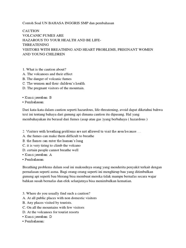 Contoh Soal Bahasa Inggris Smp Beserta Kunci Jawaban Pembahasannya : Latihan Soal Us Usbn Bahasa Inggris Smp Mts Kurikulum 2013 Tahun 2021 Pendidikan Kewarganegaraan Pendidikan Kewarganegaraan : 25.country from middle east in the text above is…….