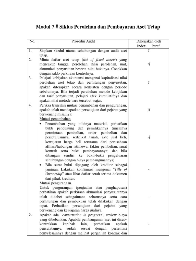 modul 9 penyelesaian pemeriksaan.xlsx on230djkpyl0. Kunci jawaban audit sukrisno agoes pt sugus ilmusosial id. modul praktikum audit modul 9. Siklus perolehan dan pembayaran aset tetap, halaman 160 s.d 162. Siklus perolehan dan pembayaran aset tetap.