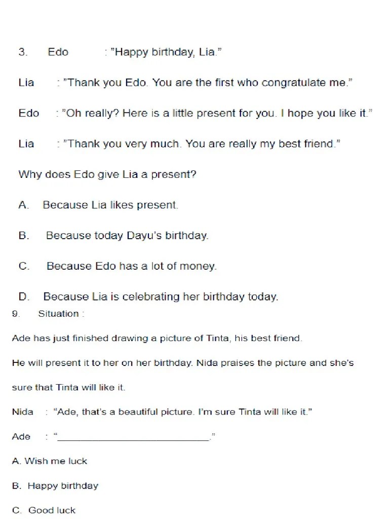 Contoh soal essay congratulation dan jawabannya kelas 10 kumpulan soal . Contoh soal bahasa inggris kelas x semester 1 kurikulum 2013. What does indah says to congratulate amanda? Data lengkap tentang contoh soal essay congratulation dan jawabannya. The expressions of thanking, complimenting, dan congratulating, present perfect tense dan preposition of time: Thanks, i will do the best b. 40 contoh soal to be is am are beserta kunci jawaban belajar. Soal pilihan ganda congratulating beserta jawabannya. Berikut, contoh soal pg bahasa inggris kelas 10 semester ganjil dengan jawabannya,. Masih berisikan materi yang sama dengan pg dan essay bagian pertama, . Many of his friends who work at the same company congratulate him. Contoh soal essay congratulation dan jawabannya kelas 10 kumpulan soal . 10 contoh soal greeting card dan kunci jawaban terbaru.